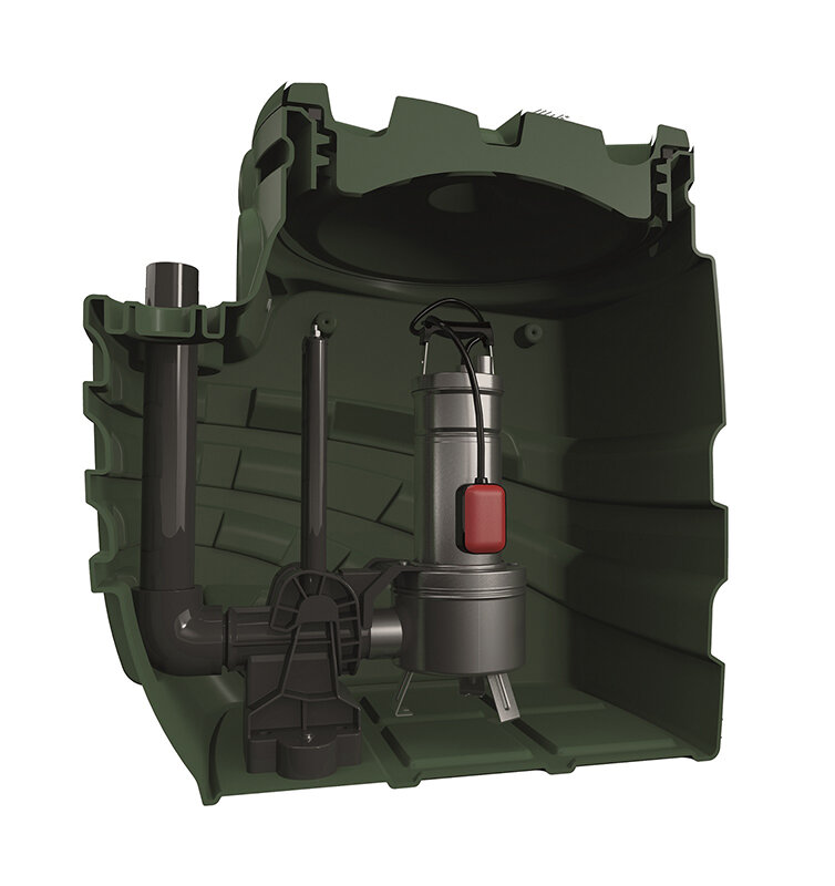 Nádrže pro čerpání odpadních vod z domácnostní nebo pro systémy umístěné pod kanalizační sítě, jako jsou garáže a sklepy, kde není možnost napojit odpadní potrubí přímo na gravitační kanalizační síť. Nádrž má mnoho možností pro připojení potrubí na vstupu, výstupu a větrání, což umožňuje adekvátní použití i v omezených prostorech.