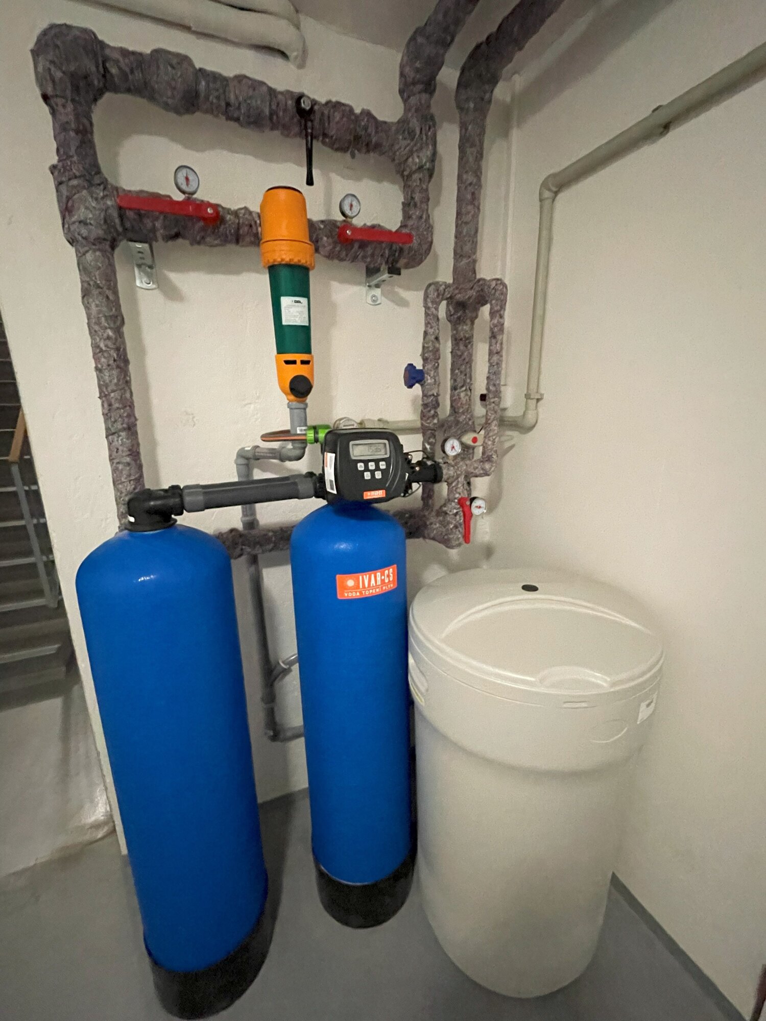 Použitý materiál: filtr mechanických nečistot GEL.DEPURA CYCLON 3000 SI, změkčovací filtr IVAR.DEVAP-TWIN 110